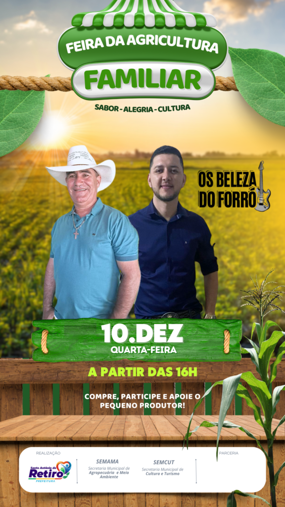 Nesta quarta-feira, à partir das 16h, venha prestigiar e apoiar os produtores da nossa terra, valorizando a agricultura familiar e garantindo produtos fresquinhos e de qualidade.